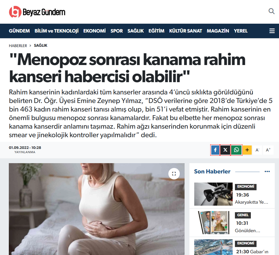 Beyaz Gündem | Menopoz sonrası kanama rahim kanseri habercisi olabilir