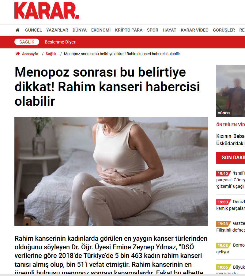 Haber Türk | Menopoz sonrası kanama rahim kanseri habercisi olabilir